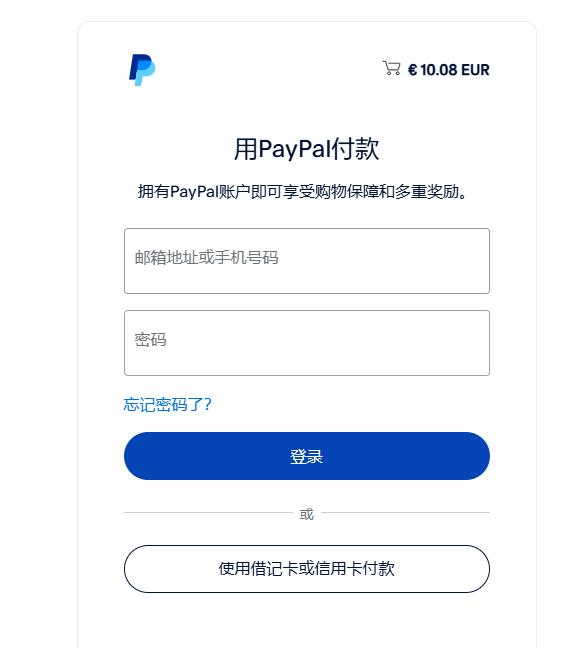 选择付款方式进行付款,以Paypal支付为例,点击上图左下角的「P」字图标,跳转到确认页面,点击右下角「立即付款」: