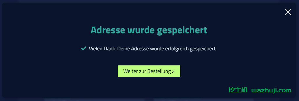 提示注册资料已保存,点击「Weiter zur Bestellung」继续: