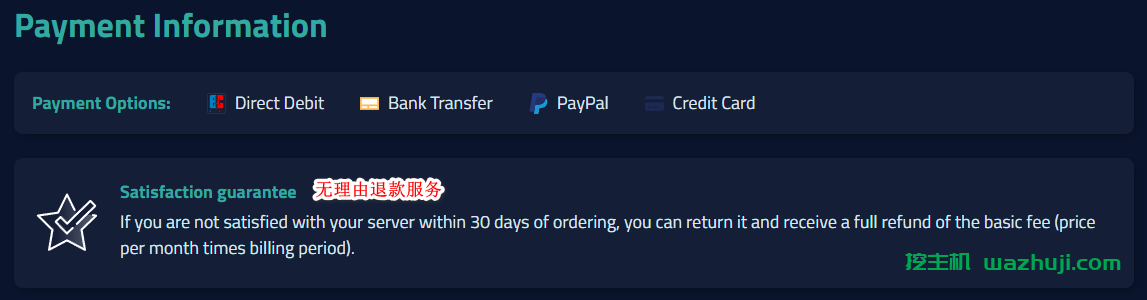 NetCup支持电汇、信用卡、Paypal等支付方式。另外部分产品提供无理由退款服务。如果你看到下图标志,则意味着你可以获得30天无理由退款服务。