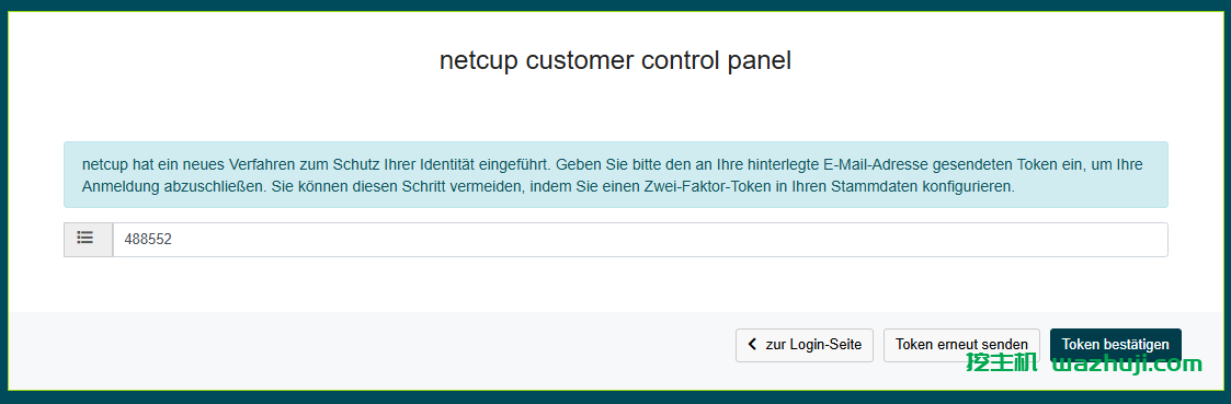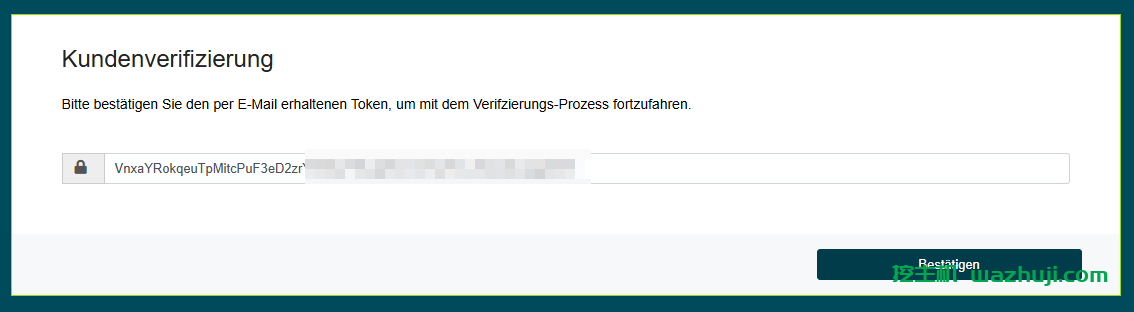 复制并在浏览器中打开第一封邮件中的验证链接,确认浏览器窗口中的令牌于邮件中的令牌一致,点击「Bestätigen」,进入下一步: