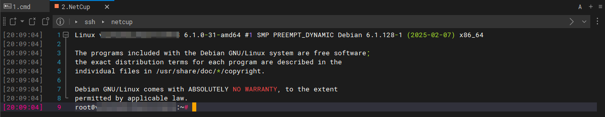 在上一步中,我们收到了NetCup发来的VPS服务器的相关资料,包括IP地址、目前安装的操作系统、root米密码等,我们可以通过SSH工具连接VPS进行管理: